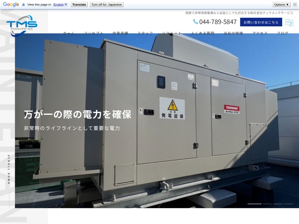 株式会社テックメンテサービス 総合的な発電機メンテナンスサービス提供 東京 非常用発電機の専門業者